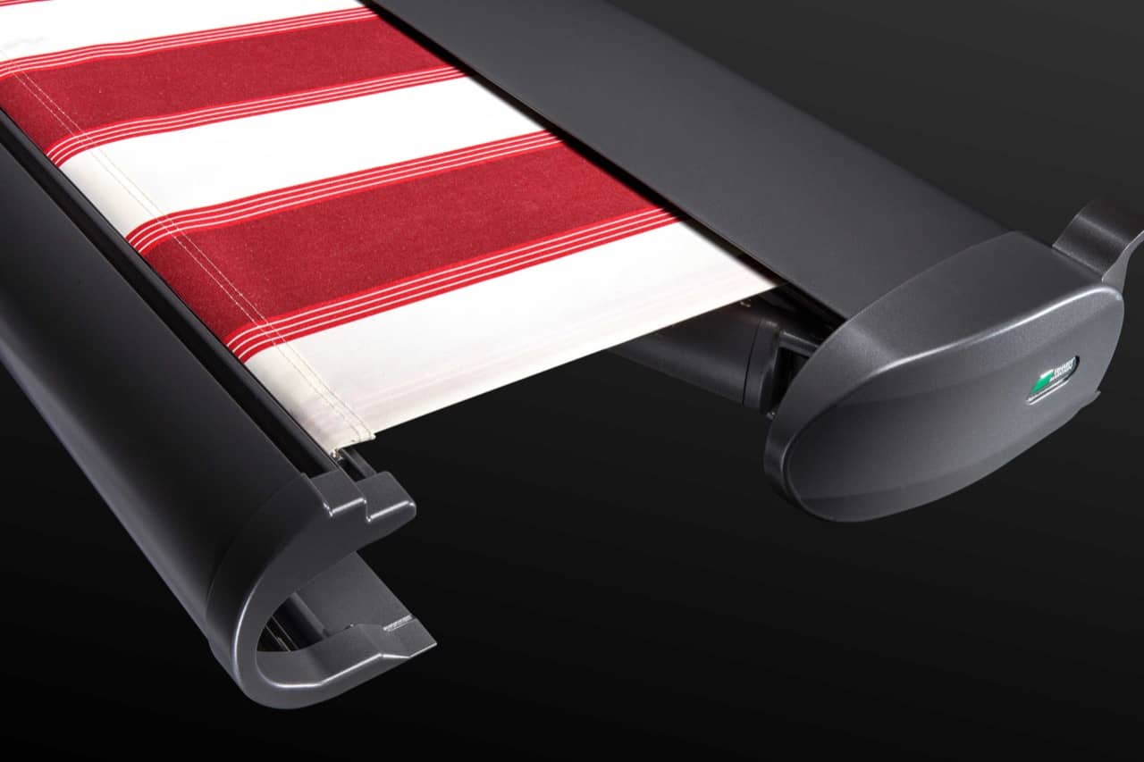 - Dank der extrem niedrigen Bauhöhe von nur 12 cm lässt ich die Markise auch auf kleinstem Raum durch die vielen Montagemöglichkeiten perfekt integrieren. Die serienmäßg integrierte Motorsteuerung erhöht den Bedienungskomfort.