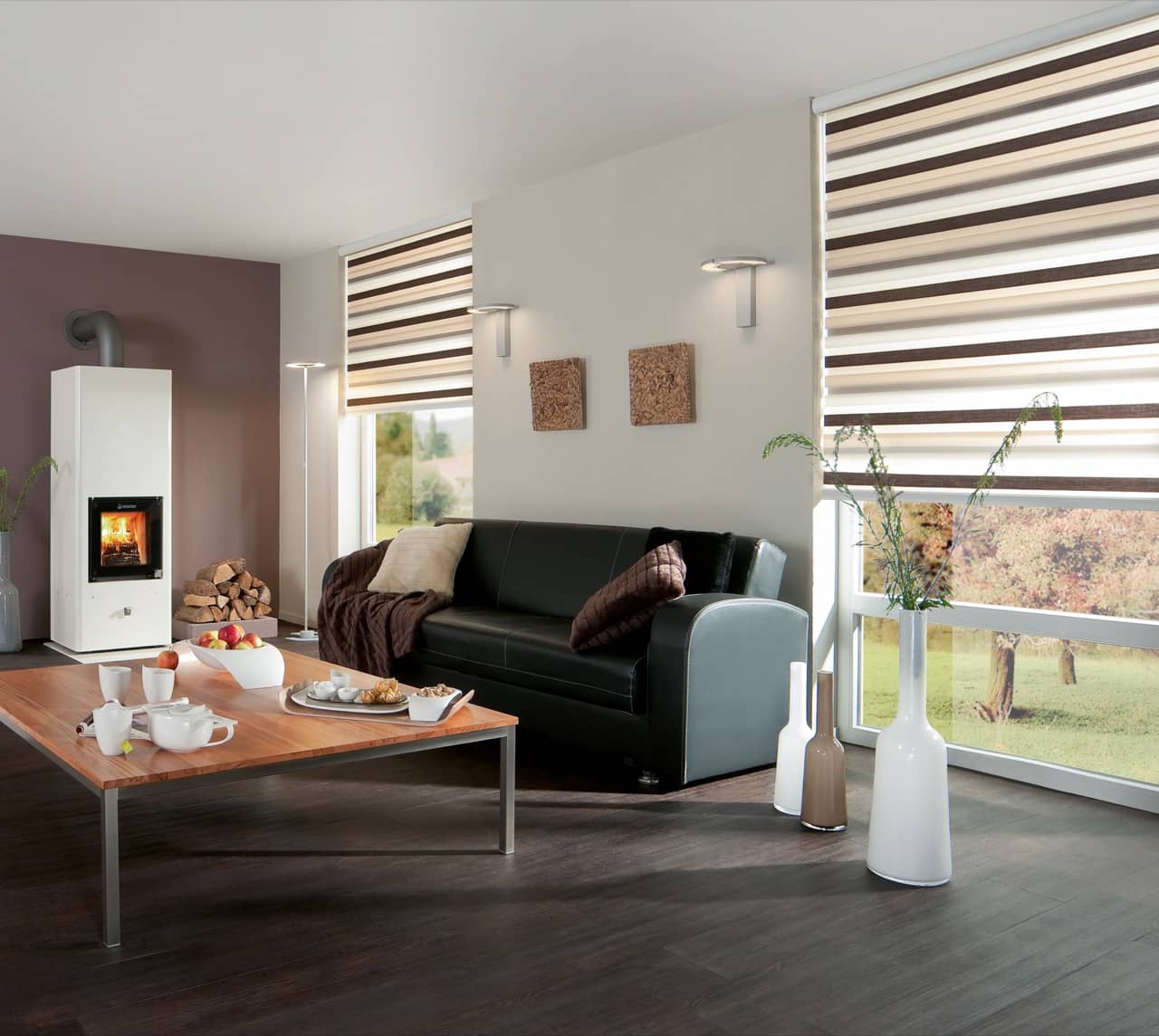 Erfal Doppelrollos schaffen ein raffiniertes Spiel von Licht und Schatten. Sie wählen, wie viel Licht Sie in Ihre Räume lassen möchten. Durch die abwechselnd transparenten und blickdichten Stoffe erreichen Sie einen stilvollen Anblick und somit ein schönes Gestaltungselement für Ihre Räume.