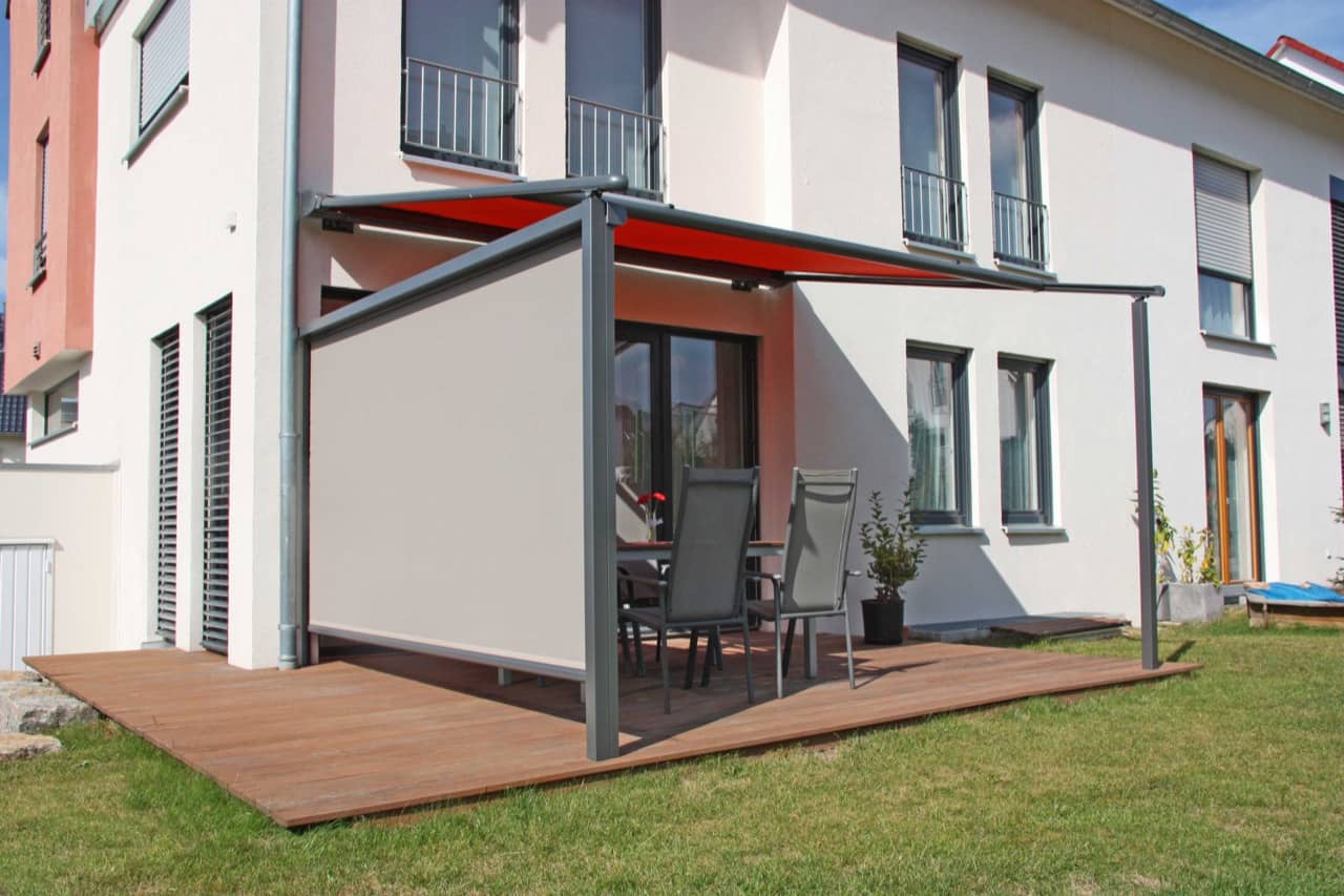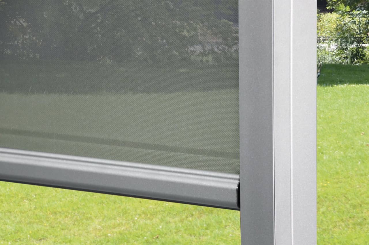 Durch das angeschweißte Reißverschlusssystem entsteht kein störender Lichtspalt zwischen Markisentuch und Führungsschiene. Daher ist die ERHARDT Z deutlich stabiler und eignet sich auch ideal bei windigem Wetter.